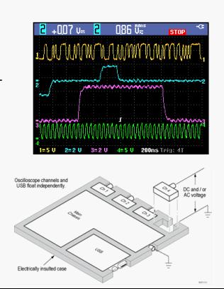 THS3000系列產(chǎn)品型號分為帶寬100 MHz、最大采樣率2.5 GS/s和200 MHZ、5 GS/s兩種,性能達(dá)到同類最佳。具備四個隔離通道,每通道10,000個樣點的記錄長度使用戶能夠以高采樣率捕獲大量信號信息,從而清楚地看到信號細(xì)節(jié),快速發(fā)現(xiàn)信號異常。THS3000示波器上的各個通道與機(jī)身接地以及各通道相互之間是隔離的。另外,用于數(shù)據(jù)存儲、儀器設(shè)置和PC通信的外部USB輸入也是隔離的。這讓用戶能夠安全地使用隨附的10X探頭進(jìn)行電壓高達(dá)300 VRMSCAT III的浮動測量,或使用可選探頭進(jìn)行電壓高達(dá)1000 VRMSCAT II的浮動測量。該儀器具有600 VRMSCAT III 防護(hù)等級的輸入(BNC連接器至大地),以保證安全的高壓測量。