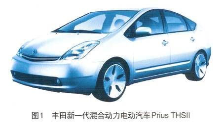 以作為混合動力電動汽車研發(fā)前沿的豐田汽車公司為例,所開發(fā)的混合動力電動汽車已達到實用化水平,自1997年所推出的世界上第一款批量生產(chǎn)的混合動力電動汽車Prius開始,其后又在2002年推出了混合動力面包車,該車混合動力系統(tǒng)采用了世紀首次批量生產(chǎn)的電動四輪驅動及四輪驅動力/制動力綜合控制系統(tǒng)。2003年,豐田又推出了新一代Prius,也被稱為“新時代豐田混合動力系統(tǒng)——THS Ⅱ”(見圖1),節(jié)能效果可達到100km油耗不足3L。從2004年開始,豐田公司向歐洲市場推出了一款新的Lexus RX型豪華混合動力轎車。豐田公司計劃2012年全部采用汽油電力混合發(fā)動機,以提高燃油經(jīng)濟性和降低排放污染。