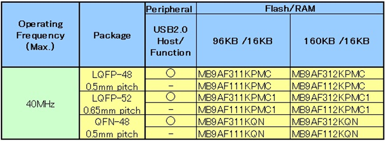 基本產(chǎn)品組:MB9A310K/110 系列 (12款產(chǎn)品)