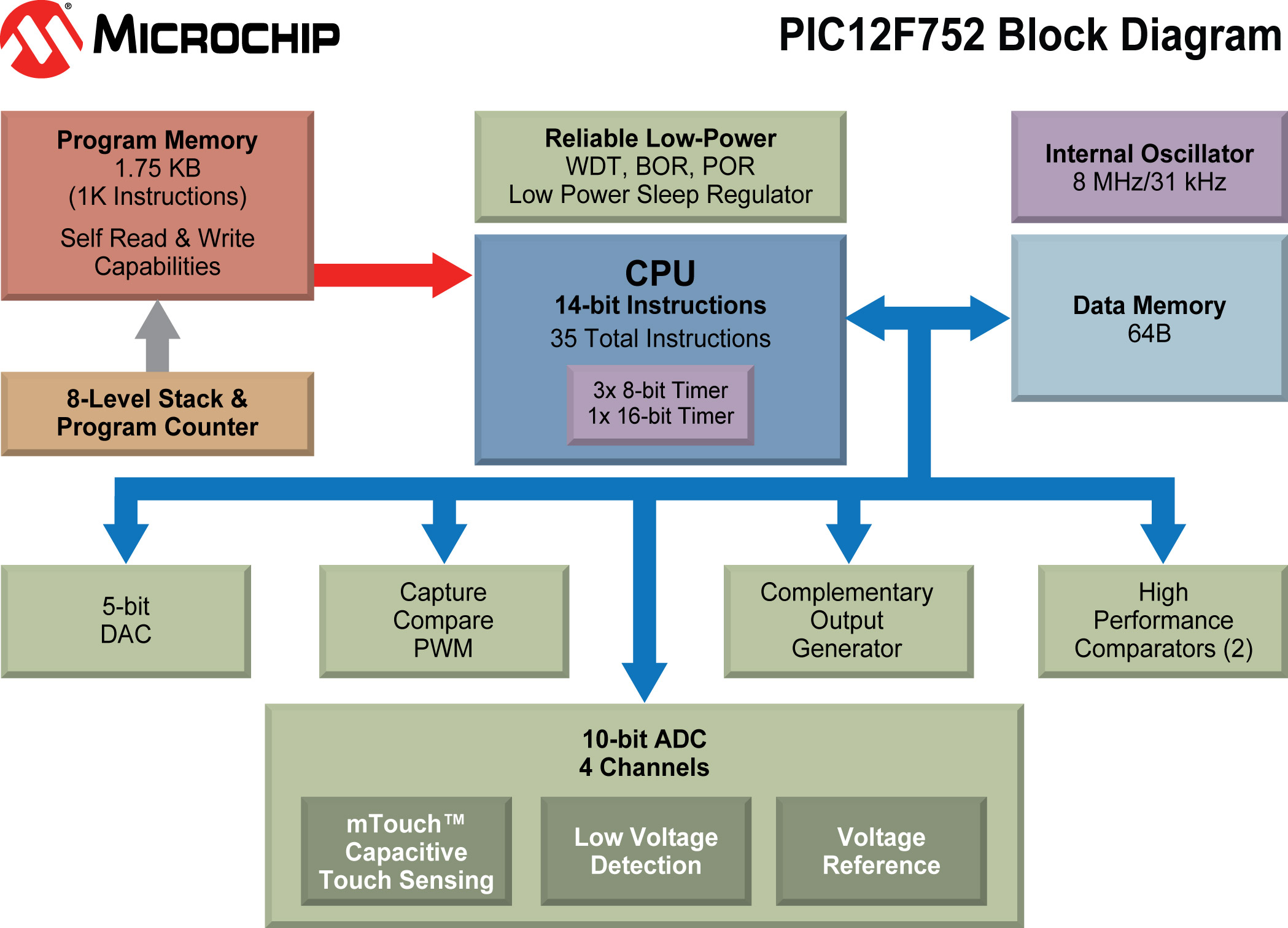 Microchip公司安防、單片機及技術開發(fā)部副總裁Steve Drehobl表示:“憑借全新COG和50 mA驅動能力等眾多的外設增強,PIC12F752 MCU可為LED照明和電池充電等應用提供高效率電源轉換。在仍保持為通用產(chǎn)品系列的同時,PIC12F752 MCU提供了一個在各種應用中集成智能化的多功能平臺。無論是用在照明、電源或家電應用中,這些MCU都可以實現(xiàn)更高的效率,并可降低成本和改善用戶體驗。”