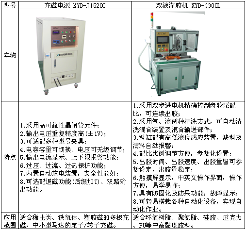 深圳市欣音達(dá)科技有限公司是一家專業(yè)研發(fā)生產(chǎn)流體控制系統(tǒng)及磁性應(yīng)用系統(tǒng)的制造企業(yè),下轄有灌膠機事業(yè)部、點膠機事業(yè)部及充退磁機事業(yè)部,客戶來自全球各地。中國電子展期間,欣音達(dá)科技給我們帶來了兩款先進(jìn)的產(chǎn)品,其特點如下表所示: