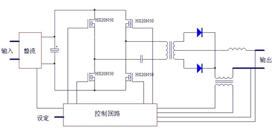 - 主控芯片選用電源IC KA3525驅(qū)動(dòng)12個(gè)HOMSEMI大功率MOSFET HS20N50