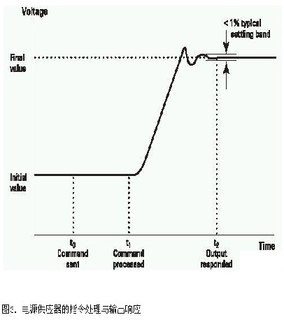 將電源供應(yīng)器的輸出電壓設(shè)定變更為新值時(shí),必須經(jīng)歷幾個(gè)步驟,如圖3 所示。這些步驟所花的時(shí)間很有限。當(dāng)電源供應(yīng)器接收到指令時(shí),必須加以處理,因此會(huì)有一段指令處理時(shí)間。接著,電源供應(yīng)器的輸出會(huì)予以回應(yīng)并變更成新的設(shè)定。它在某個(gè)穩(wěn)定區(qū)段內(nèi)達(dá)到終值所花的時(shí)間,即為輸出響應(yīng)時(shí)間。1%的穩(wěn)定區(qū)段對(duì)ECU 測(cè)試來(lái)說(shuō)是合適的。特別需要注意的是下調(diào)設(shè)定時(shí)的輸出響應(yīng)時(shí)間。許多電源供應(yīng)器都必須依賴真實(shí)的DUT 負(fù)載來(lái)降低電壓,在負(fù)載較小的情況下,一些不具下調(diào)設(shè)定器的電源供應(yīng)器可能需要花一秒左右的時(shí)間來(lái)達(dá)到終值。N6752A 電源供應(yīng)器模組內(nèi)建了一個(gè)下調(diào)設(shè)定器,能夠加快下調(diào)設(shè)定的速度,而不受負(fù)載的影響。在ECU 測(cè)試中,上調(diào)與下調(diào)設(shè)定都必須夠快才行?! ?br />