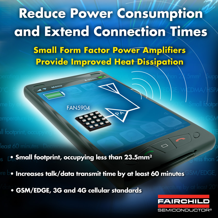 作為正在實(shí)施的便攜產(chǎn)品計(jì)劃的一部分,飛兆半導(dǎo)體通過(guò)與客戶密切合作開(kāi)發(fā)出FAN5904器件,這是一款支持GSM/GPRS/EDGE、3G/3.5G 和4G功率放大器(PA)的大功率高效同步降壓轉(zhuǎn)換器,能夠降低無(wú)線便攜設(shè)備的功耗,將連通時(shí)間延長(zhǎng)60分鐘以上。FAN5904具有小于23.5 mm2的占位面積,還能夠在維持射頻性能的同時(shí),將功率放大器的工作溫度降低至少20ºC。