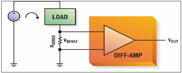 理想情況下,電流和電壓檢測(cè)都不應(yīng)影響所連接的負(fù)載。這意味著電壓檢測(cè)器件應(yīng)該具有近似無(wú)窮大的輸入阻抗,這樣才能確保對(duì)負(fù)載沒(méi)有明顯的分流。相反,電流檢測(cè)應(yīng)該具有近似為零的輸入阻抗,這樣才能確保加到負(fù)載上的電壓不會(huì)明顯降低。高端電流檢測(cè)電路(放大器+電阻器)應(yīng)滿足這兩項(xiàng)要求。用來(lái)檢測(cè)RSENSE上電壓的放大器必須具有高輸入阻抗,而用來(lái)檢測(cè)負(fù)載電流的電阻則必須非常小。