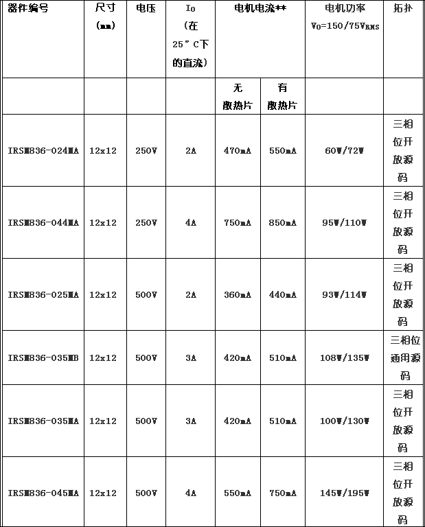 全新µIPM系列采用超小型12x12x0.9mmPQFN封裝,配備多種充分整合的三相位表面貼裝電機(jī)控制電路解決方案。IR為相關(guān)市場率先引入全新的方法,采用PCB銅線幫助模塊散熱,從而通過較小的封裝設(shè)計(jì)來減少成本,甚至省卻對(duì)外置散熱片的需要。此外,與傳統(tǒng)雙重內(nèi)嵌式模塊方案相比,標(biāo)準(zhǔn)QFN封裝技術(shù)通過省卻通孔第二通道組裝和提升散熱性能可以進(jìn)一步簡化裝配過程。