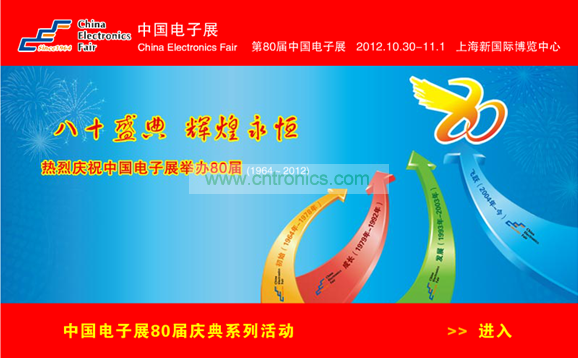 2012年10月,中國電子展將迎來第80屆盛典。四十余載,八十屆輝煌。為慶祝并紀(jì)念這個全國電子業(yè)界共同的盛會,主辦單位中國電子器材總公司將以“八十盛典,輝煌永恒”為主題,舉辦大型慶典活動?;顒影ǎ航M織大型圖片展與有獎?wù)魑拇筚?;出版《魅力電子展,輝煌八十屆》大型特刊;回饋中國電子展忠實參展商;舉行隆重的開幕典禮、盛大的招待酒會;同時還將組織一系列研討會、高層論壇等專業(yè)活動。