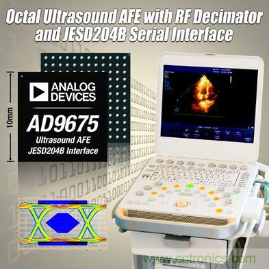 【導(dǎo)讀】ADI最近推出了8通道超聲模擬前端(AFE)AD9675,該器件內(nèi)置片內(nèi)RF抽取器和JESD204B串行接口,針對中高端便攜式和手推式醫(yī)用及工業(yè)超聲系統(tǒng)而設(shè)計。