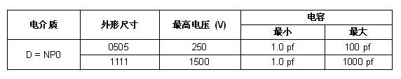 QUAD HIFREQ系列的工作電壓為200V~1500V,容量范圍1.0pF~1000pF。器件具有±0.1pF的嚴格公差,每十年的老化率為0%,工作溫度為-55℃~+125℃。