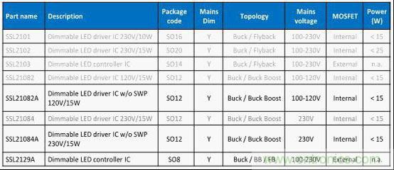 圖1 NXP中小功率市電供電非調(diào)光LED驅(qū)動IC選型表格