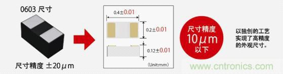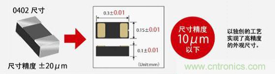 1.采用獨創(chuàng)的工藝技術,實現世界最小※的03015尺寸(0.3 mm×0.15 mm)