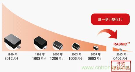 【導讀】ROHM采用全新工藝方法,開發(fā)出超越微細化界限的世界最小元器件“RASMID™系列”,有助于移動設備進一步小型化。本文從ROHM的RASMID™系列的特點、二極管的小型化歷史等方面進行介紹。