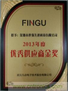 圖1:世強獲得武漢凡谷“2013年度優(yōu)秀供應商金獎”