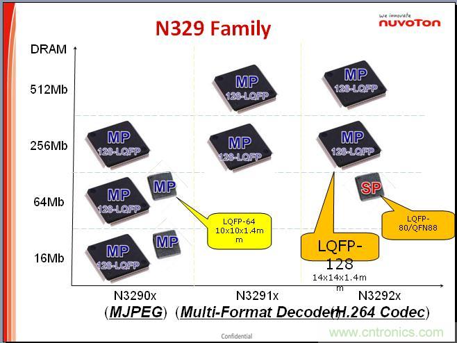 針對(duì)MCP,可以看到我們不同的總結(jié),針對(duì)剛才提到的3290系列、91系列和92系列堆疊的MCP的容量,從16兆到512兆,這些都有,當(dāng)然剛才提到了92系列,目前都是128P的LQFP的封裝。我們也剛做了80和88LQFP的封裝,這個(gè)應(yīng)用可能是普通家庭民用的消費(fèi)者使用的會(huì)越來(lái)越多,因?yàn)殡S著網(wǎng)速的提高,包括4G的應(yīng)用越來(lái)越多,普通的消費(fèi)者不見(jiàn)得是剛才提到的安防類的,或者是智能交通,或者是平安城市之類的,可能普通的家庭也會(huì)用這種視頻監(jiān)控的應(yīng)用。