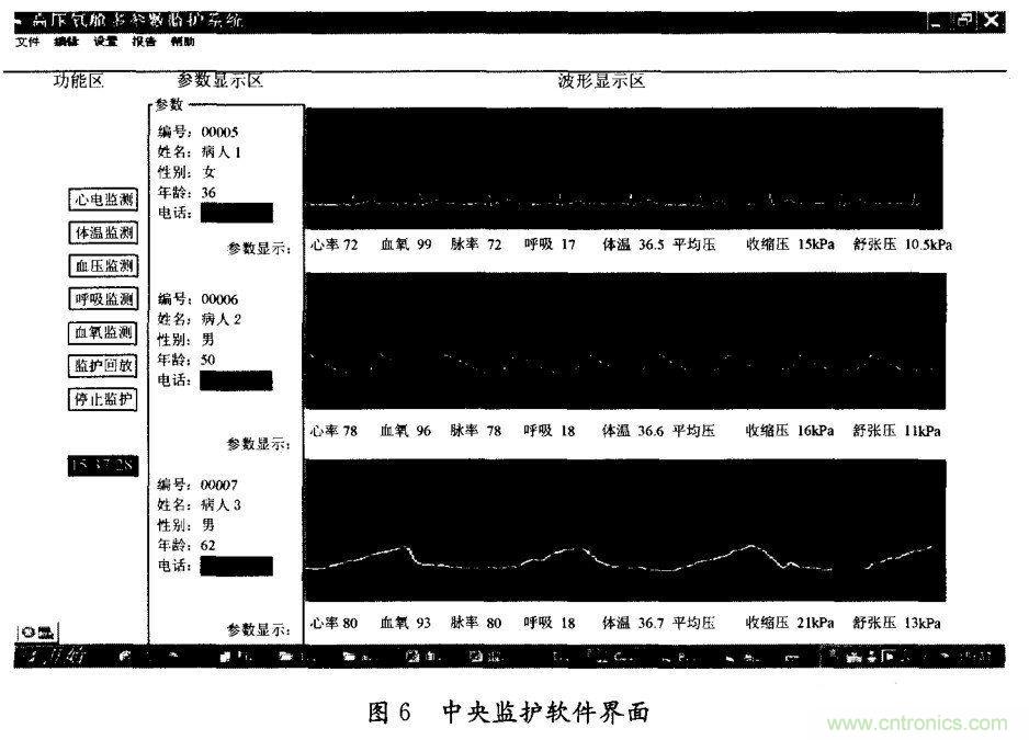 基 于無(wú)線傳感檢測(cè)與通信技術(shù)研制的高壓氧艙專用設(shè)備,可實(shí)現(xiàn)心電、血氧飽和度、脈搏、心率、體溫、呼吸頻率、血壓等多生命體征參數(shù)的多通路協(xié)同監(jiān)測(cè),并實(shí)現(xiàn) 艙內(nèi)外同步實(shí)時(shí)的傳輸、控制與顯示。監(jiān)護(hù)設(shè)備具有結(jié)構(gòu)緊湊、體積小、功耗低、可穿戴等特點(diǎn),可保證在高壓氧艙內(nèi)安全使用。臨床測(cè)試結(jié)果表明,該監(jiān)護(hù)設(shè)備符 合系統(tǒng)設(shè)計(jì)要求,測(cè)試參數(shù)精確可靠,已具備良好的臨床應(yīng)用性能。本監(jiān)護(hù)設(shè)備針對(duì)高壓氧艙專用而研制,也可用于其他特種環(huán)境下患者生命體征參數(shù)的監(jiān)護(hù),對(duì)無(wú) 線傳感技術(shù)在醫(yī)療器械應(yīng)用研究方面進(jìn)行了有益的探索。