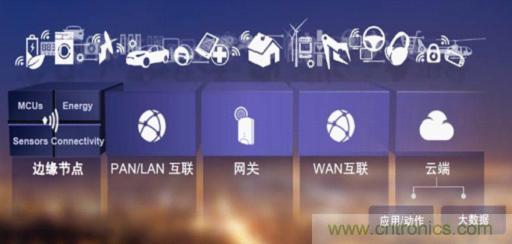 目前,整個(gè)物聯(lián)網(wǎng)的系統(tǒng)架構(gòu)可以分為5個(gè)部分,分別是邊緣節(jié)點(diǎn)、PAN/LAN互聯(lián)、網(wǎng)關(guān)、WAN互聯(lián)和云端,如圖1所示。飛思卡爾發(fā)現(xiàn),很多公司所做的產(chǎn)品無(wú)法在邊緣節(jié)點(diǎn)、網(wǎng)關(guān)以及云端這3個(gè)層次中共用。例如可穿戴設(shè)備,或者所設(shè)計(jì)的智能家居中的某些節(jié)點(diǎn),要對(duì)該節(jié)點(diǎn)進(jìn)行控制,可能選擇方案是“入門級(jí)低功耗MCU+連接性+傳感器”,這種設(shè)計(jì)方式是純粹的MCU設(shè)計(jì)方式。到了網(wǎng)關(guān)層次,復(fù)雜度會(huì)提高,就更偏向于使用高端的MCU,甚至是MPU。到云端就更復(fù)雜了,它的設(shè)計(jì)可能采用應(yīng)用處理器或者通信處理器。在物聯(lián)網(wǎng)的構(gòu)架中,大部分設(shè)備使用不同的技術(shù)、工具和開(kāi)發(fā)環(huán)境,甚至連編程語(yǔ)言也是不同的。怎樣來(lái)解決這個(gè)問(wèn)題呢?