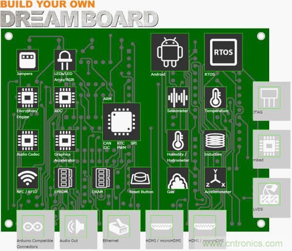 最終,e絡(luò)盟將整合設(shè)計(jì)者們?cè)趧?chuàng)建終極Dream Board過(guò)程中使用最為頻繁的元器件名單,并將于今年年底公開(kāi)。