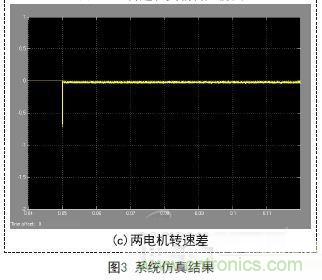 系統在采用偏差耦合控制策略的基礎上加入PID控制補償器,使系統能夠很好的實現同步控制。每臺電機都采用專門的控制器和速度補償模塊,通過svpwm方式對電機進行調速,并采用電流環(huán)與速度環(huán)的雙閉環(huán)控制,即每臺電機及其控制器組成一個閉環(huán)系統,各子系統之間通過速度補償模塊進行耦合,形成完整的控制系統,增強了系統的抗干擾性。仿真結果表明,基于svpwm的PID雙閉環(huán)系統具有超調量小、響應迅速、魯棒性強等特點,而加入偏差耦合控制策略的雙電機控制系統具有良好的同步性。