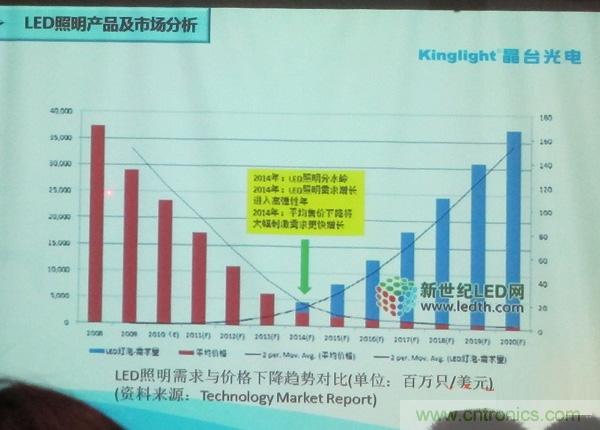 晶臺光電技術(shù)總監(jiān)邵鵬??春肔ED照明未來的發(fā)展,他說,2014年LED照明平均售價的下降將大幅刺激需求快速增長。而價格和可靠性是當(dāng)前影響LED進(jìn)入室內(nèi)照明的最重要因素。