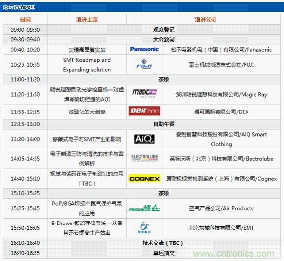 據(jù)主辦方介紹,為期一天的論壇將結(jié)合嘉賓演講和產(chǎn)品展示兩大形式為到場專業(yè)觀眾提供豐富的視聽體驗,更為電子制造設(shè)備/系統(tǒng)/方案使用者提供了深入了解供應(yīng)商“智”造服務(wù)的良好機(jī)會。在嘉賓演講版塊,主辦方邀請到來自Panasonic(松下)、Fuji(富士機(jī)械)、明銳理想、DEK(得可)、英特沃斯、康耐視、空氣產(chǎn)品、東械等涵蓋電子制造全產(chǎn)業(yè)鏈各生產(chǎn)環(huán)節(jié)的領(lǐng)先供應(yīng)商代表。在現(xiàn)場產(chǎn)品展示方面,與會觀眾更有機(jī)會近距離體驗來自Fuji(富士機(jī)械)、明銳理想、DEK(得可)、華普通用、英特沃斯、善思光電、章和電氣、首為國際(APOLLO SEIKO)、Praxair(普萊克斯)、東星科技、日本奧泰斯(OPTEX FA)等優(yōu)質(zhì)供應(yīng)商提供的先進(jìn)技術(shù)及設(shè)備。