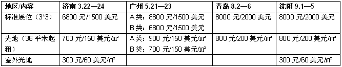 備注:標(biāo)準(zhǔn)展位:包括(3M×3M)展位(三面圍板、楣板、一桌二椅、220V電源插座、照明費、清潔費等)