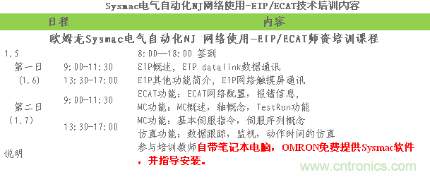 【導(dǎo)讀】2015年1月6-7日,由IAAT項目和歐姆龍自動化由IAAT項目和歐姆龍自動化聯(lián)合主辦的Sysmac電氣自動化NJ網(wǎng)絡(luò)使用-EIP/ECAT師資培訓(xùn)班在西安交通大學(xué)順利舉辦!