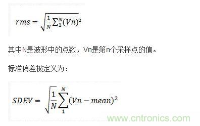 為了計算電源輸出上只是噪聲和紋波的rms值,你可以選擇標(biāo)準(zhǔn)偏差或交流rms。