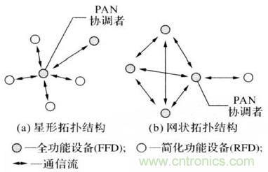 為降低成本,ZigBee標準中定義了兩種類型的設(shè)備:全功能設(shè)備( full function device, FFD)和簡化功能設(shè)備( reduced function device, RFD ) 。