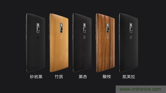 外觀上一加2以1代產(chǎn)品為基礎(chǔ),在手感、質(zhì)感上兩個詞上下功夫。新機采用金屬材質(zhì)邊框,并調(diào)整邊框背面弧度使之更貼合;材質(zhì)方面,新品擁有砂巖黑、竹質(zhì)、黑杏、酸枝、凱芙拉共計五種后殼版本。盡顯復(fù)古,原始,典雅風(fēng)格。側(cè)面金屬的加入和可更換后殼,讓手感做出提升和差異化。