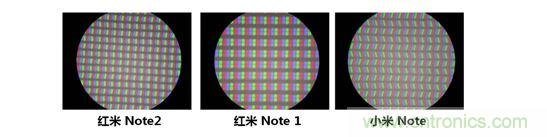 我們再來看一下顯示屏的像素結(jié)構(gòu),從像素的排列來看,這個屏幕確實是IPS技術(shù)的,像素比紅米Note1有了大大的提升。