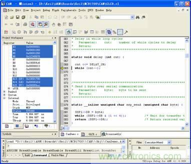 在Keil MDK環(huán)境下,進(jìn)入仿真狀態(tài)之后,打開(kāi)【Debug】菜單下的【Breakpoints】選項(xiàng)。在Breakpoints窗口即可定義變量操作斷點(diǎn)。