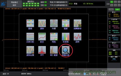 PA系列功率分析儀都具備波形回放和波形記錄功能。波形回放是指在測(cè)試過程中可以隨時(shí)將測(cè)試儀器暫停下來(lái),通過波形回放來(lái)觀察暫停前一段時(shí)間內(nèi)的波形,具體操作如下: