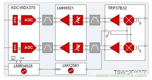 圖 2:TSW16DX370接收機系統(tǒng)參考設計
