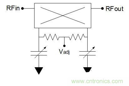 集中的波束無法在需要時導引波束,便用途有限。使用聯(lián)機相位調節(jié)電路更改各個元件的相對相位,可以導引波束。圖3顯示了基于變容二極管的模擬相位調節(jié)器電路?;旌像詈掀靼演斎牒洼敵龅幕夭〒p耗保持在合理水平。如果信號路徑包括該電路,RF性能(尤其是互調失真)會由于變容二極管的非線性性能而降低。