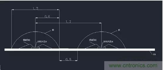 從物理空間尺寸來看,COB封裝在設計燈珠直徑時不再受制于支架尺寸的限制,如下圖所示:
