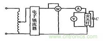 電工學和電路原理課程中有測試熒光燈電路功率因數(shù)實驗,通常功率因數(shù)測量有兩種方法:一是利用功率因數(shù)表;二是利用圖2所示的三表法,即功率表、電壓表、電流表。有的用電子鎮(zhèn)流器與電感式鎮(zhèn)流器啟動熒光燈做比較實驗,讓學生明白提高線路功率因數(shù)的意義,但在做比較實驗時主要存在兩個問題: