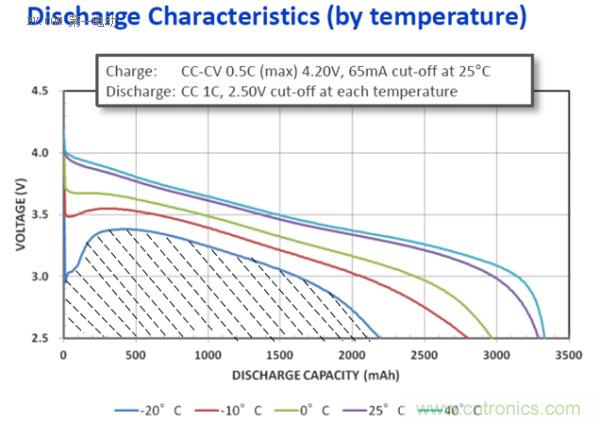 容量測(cè)試Output:溫度與容量(能量)關(guān)系表。以時(shí)間T為X軸,以電壓V為Y軸。不同溫度下1C放電截止在X軸上的點(diǎn)為容量與溫度的關(guān)系。而各個(gè)放電曲線與X、Y軸形成的面積之比就是不同溫度下的可用能量之比。如下圖所示:-20℃時(shí)的電池可用能量(Wh) = 陰影部分的面積S。由此可見,SOE比SOC能更加準(zhǔn)確的表示出剩余的能量,從而更準(zhǔn)確的評(píng)估剩余里程。