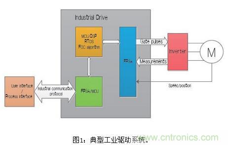 傳統(tǒng)上,工業(yè)電機控制應(yīng)用使用微控制器或DSP來運行電機控制所需的復雜算法,在大多數(shù)傳統(tǒng)的工業(yè)驅(qū)動中,FPGA與微控制器或DSP一起使用,用于數(shù) 據(jù)采集和快速作用保護。除了數(shù)據(jù)采集、PWM生成和保護邏輯,FPGA傳統(tǒng)上并未在實現(xiàn)電機控制算法方面發(fā)揮主要作用。