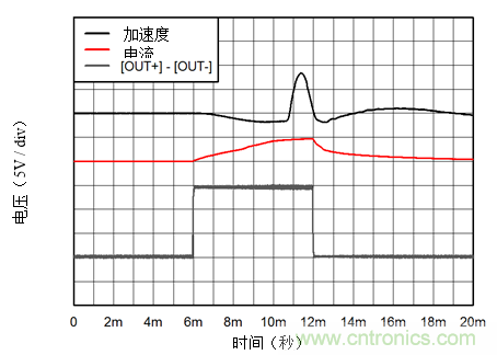圖1:螺線(xiàn)管加速度圖:加速度= 5.85G / div;電流= 2A / div;電壓= 5V / div