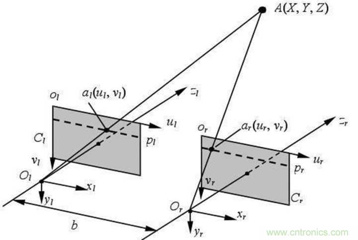 雙目視覺的基本原理是利用兩個平行的攝像頭進(jìn)行拍攝,然后根據(jù)兩幅圖像之間的差異(視差),利用一系列復(fù)雜的算法計算出特定點的距離,當(dāng)數(shù)據(jù)足夠時還能生成深度圖。