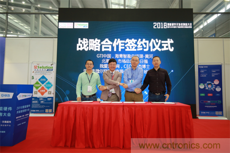 在開啟技術(shù)方案平臺(tái)+供應(yīng)鏈創(chuàng)新模式的同時(shí),我愛方案網(wǎng)與美國GTI戰(zhàn)略合作簽約儀式也成功舉行,邀請(qǐng)到GTI中國海青智盈總經(jīng)理黃河先生,北高智市場(chǎng)總監(jiān)朱仝日強(qiáng),我愛方案網(wǎng)CEO劉杰博士,深圳市微爾聯(lián)科技總經(jīng)理溫曉標(biāo)出席。這也是2017年末AI應(yīng)用聯(lián)盟活動(dòng)的落地,我愛方案網(wǎng)作為GTI芯片方案服務(wù)商,攜手第一批代理商北高智、方案開發(fā)公司微爾聯(lián),聯(lián)合將GTI芯片逐步推向終端市場(chǎng)。