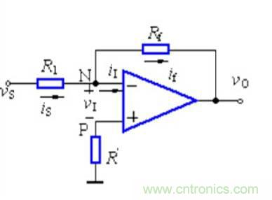 反相端輸入電流iI=0的概念,通過(guò)R2與R1的電流之和等于通過(guò)Rf的電流故