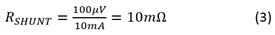 電源電壓為3.3V。在正確操作的情況下,系統(tǒng)得出最大電流值為10mA;你不想要有效接地,使負(fù)載高于100µV。你首先要明白一點(diǎn),分流電阻的壓降(由于電流)必須小于或等于100µV。