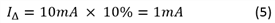 如果存在故障(如:開(kāi)路,低電流導(dǎo)致的欠壓,高電流導(dǎo)致的短路或掉電),公式5表示電流的變化(IΔ):
