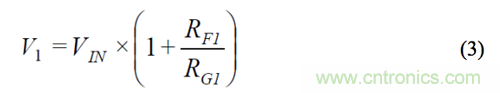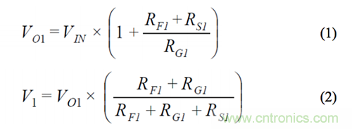 另外,輸入放大器的偏置電流會導(dǎo)致因增益而異的失調(diào)。由于輸入放大器和輸出緩沖器采用同一芯片,因此可以利用其偏置電流的相對匹配性來消除上述失調(diào)變化。將一個大小等于 RF2與 RF1之差值的電阻與開關(guān) S2A 串聯(lián),可以減少失調(diào)-電壓差。下面的推導(dǎo)公式說明,在 V1 采樣可產(chǎn)生所需的信號增益,且無增益誤差。RS表示開關(guān)電阻。V2 可以利用同樣的方法導(dǎo)出。