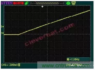 我們把掃描周期設(shè)置為1us每格,輸入靈敏度設(shè)為200mV每格,可以更清晰的看到電感電流上升初期的情況。