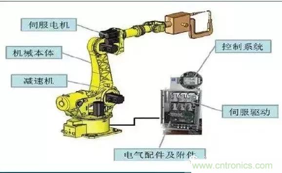 【導(dǎo)讀】工業(yè)機器人廣泛使用在產(chǎn)業(yè)制造上,汽車制造、電器、食品等,能替代反復(fù)機器式操縱工作,是靠本身動力和控制才能來實現(xiàn)種種功用的一種機器。它能夠承受人類指揮,也能夠按照事先編排的程序運轉(zhuǎn)。如今我們講講工業(yè)機器人基本主要構(gòu)成部分。