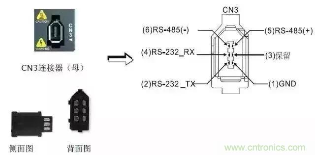 驅(qū)動器通過CN3端口與電腦PLC、HMI等上位機相連接,采用MODBUS通訊來控制驅(qū)動器,可使用RS232、RS485進行通訊。
