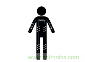 電容器和攜帶電流的金屬片一樣充當(dāng)電容器的另一個(gè)板。由于這種電容效應(yīng),電流通過身體??焖僮兓碾妷涸试S更多電流通過身體。