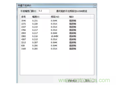 圖3錯誤幀是在幀結束位置出現(xiàn)電平臺階。此錯誤由主動錯誤標志+錯誤標志疊加而成,二次抬高的是 6 個連續(xù)顯性電平,因某節(jié)點錯誤后全局通知,各節(jié)點錯誤標志疊加造成的。通常,當節(jié)點受較強的電磁場干擾后易發(fā)生此類錯誤,如變頻器、逆變器、電機等功率器件。此時,我們亦可配合FFT分析工具分析干擾頻點,以此定位到干擾源并屏蔽它,如圖4。